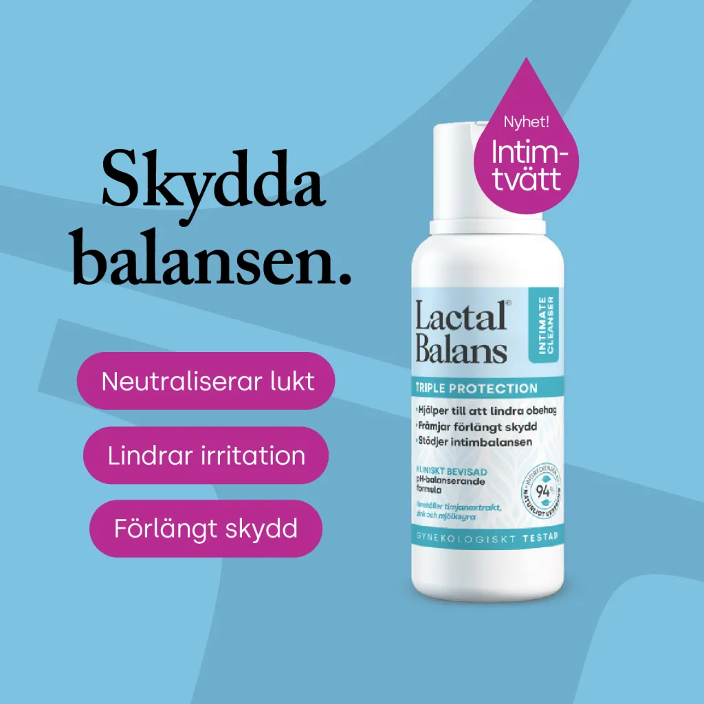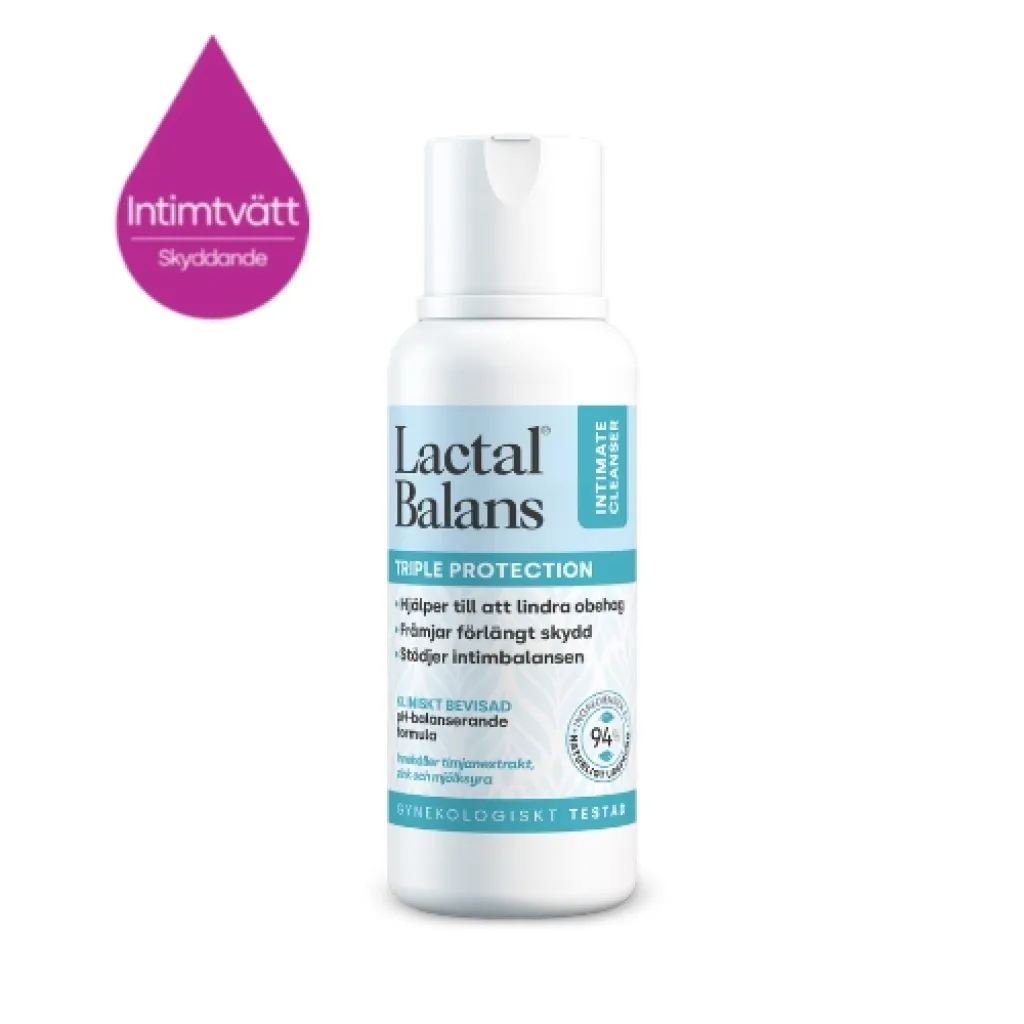 Lactal Balans Triple Protection är kliniskt bevisad och gynekologiskt testad. Lactal Balans Triple Protection har i kliniska studier bevisats balansera pH-värdet i underlivet samt lindra obehag som besvärande lukt och irritation. Tillsammans med Acti GyneProtection System™ stödjer den helt enkelt intimbalansen.
